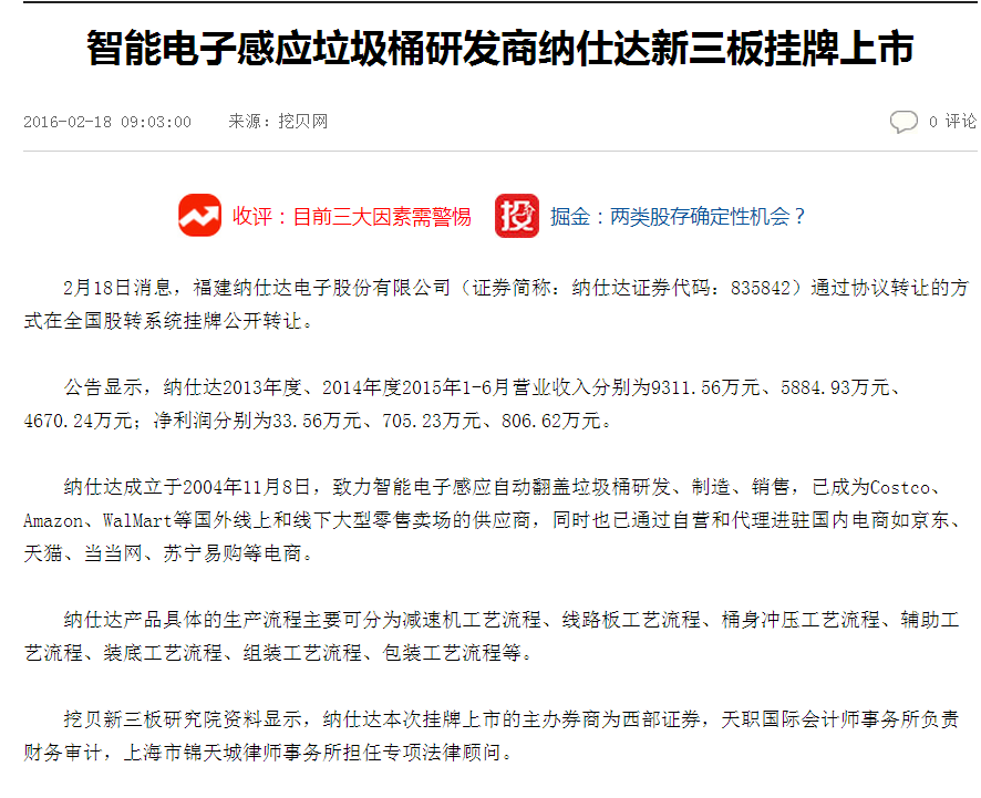 纳仕达新三板挂牌上市